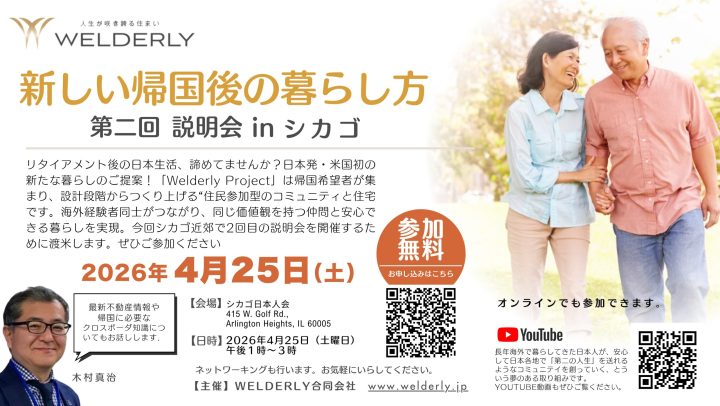 今回第2回目となる「新しい帰国後の暮らし方」説明会。将来日本への帰国を考えている方は必見!リタイア後の日本生活をさらに豊かにする、新しい生活スタイルの提案を不動産のプロがご提案します。お気軽にご参加ください。