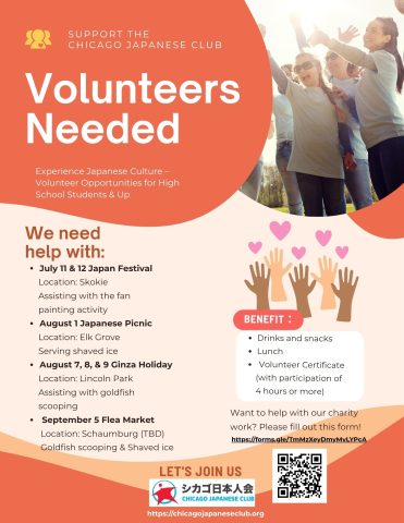 会員の皆さまはもちろんのこと、お子さんやお孫さんに高校生の方はいらっしゃいませんか?コミュニティを通して日本文化を知るチャンス!4時間以上のボランティアで、ボランティア証明書も発行します。