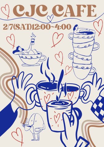 今年初のCJC cafeのテーマは「Valentineday」。12時から4時までOPENして皆さまのお越しをお待ちしています。お気軽にどうぞ💕